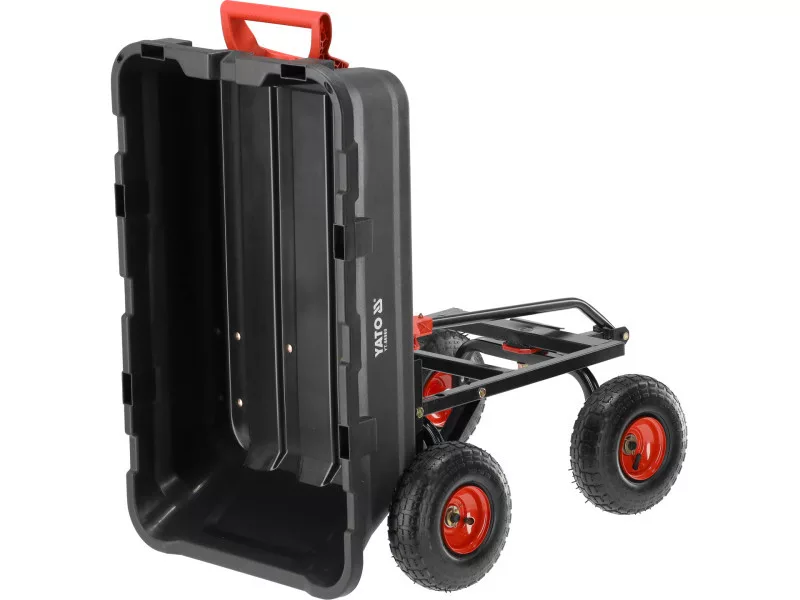 The universal cart YT-86960 is an indispensable tool for all home and garden tasks. Designed for efficiency, it facilitates the transport and unloading of heavy materials.