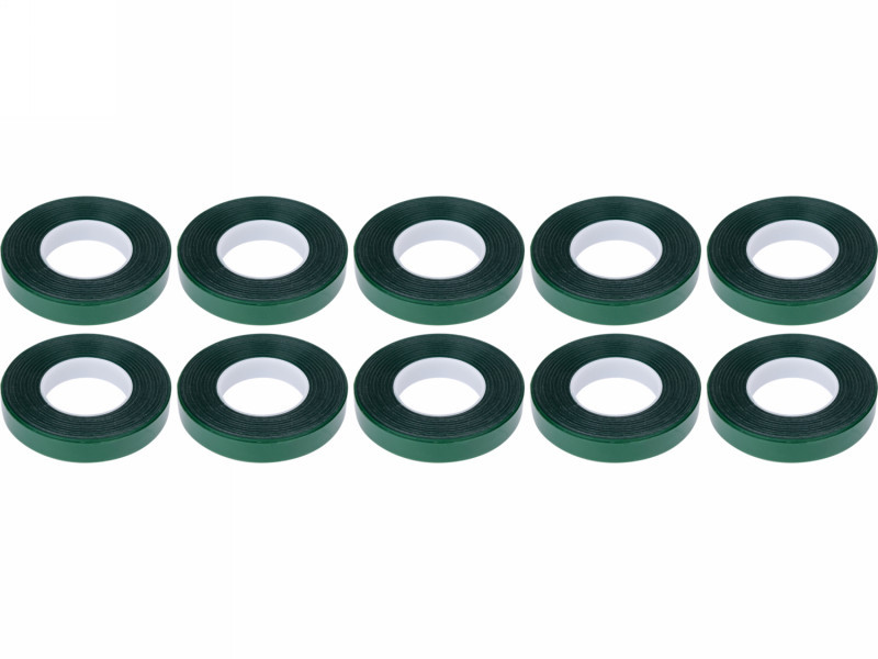 Elastic tape on a roll designed for tying plants using a garden stapler. It facilitates quick attachment of plants to supports without the need for tying strings. The material adjusts to the stem and stabilizes it, leaving a small amount of slack needed for growth.