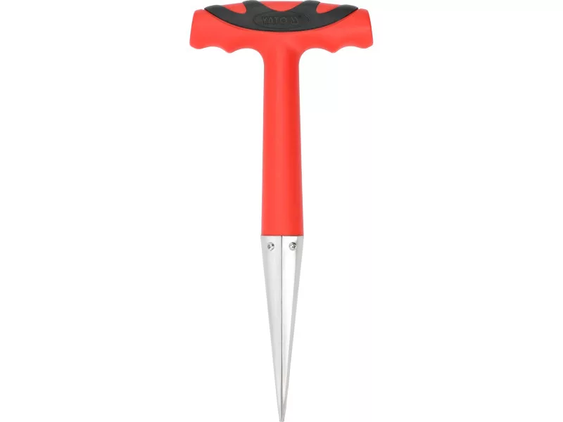 Durable gardening pickaxe with a stainless steel tip, perfect for planting plants and preparing holes in the ground. Equipped with an ergonomic, two-component T-handle made of PP plastic and soft TPR, ensuring comfort during work.