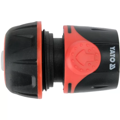 The YATO YT-89013 quick connector with STOP function is a practical and reliable solution for garden hoses with a diameter of 3/4". The STOP function automatically cuts off the water flow after disconnecting the accessory, allowing for changing the ends without having to turn off the water. This convenient and cost-effective solution increases comfort while working in the garden.