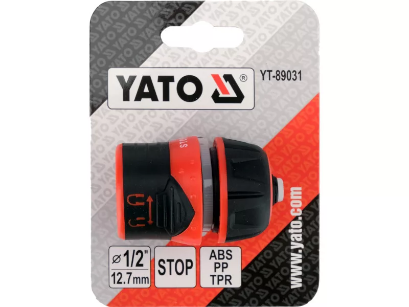 The YATO YT-89031 quick connector is an advanced garden connector designed for hoses with a diameter of 1/2". Equipped with a quick locking function and water stop, it allows for convenient and safe connection of the sprinkler without the risk of water spillage after disconnecting the nozzle. The locking function automatically stops the water flow, making it easier to change accessories without the need to turn off the tap.