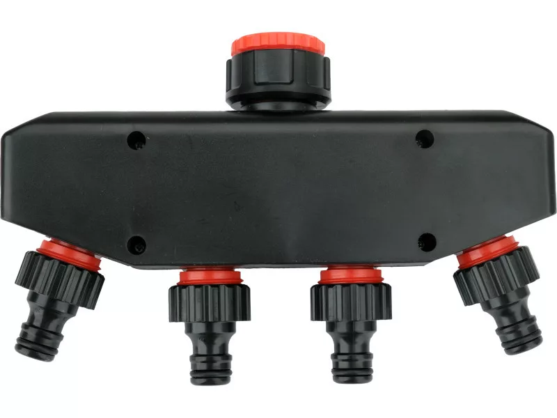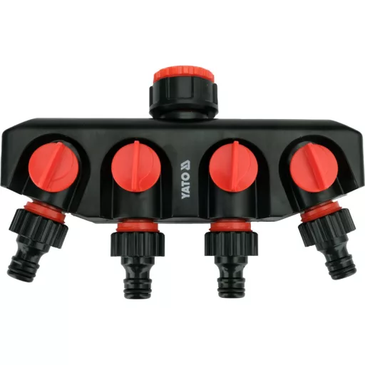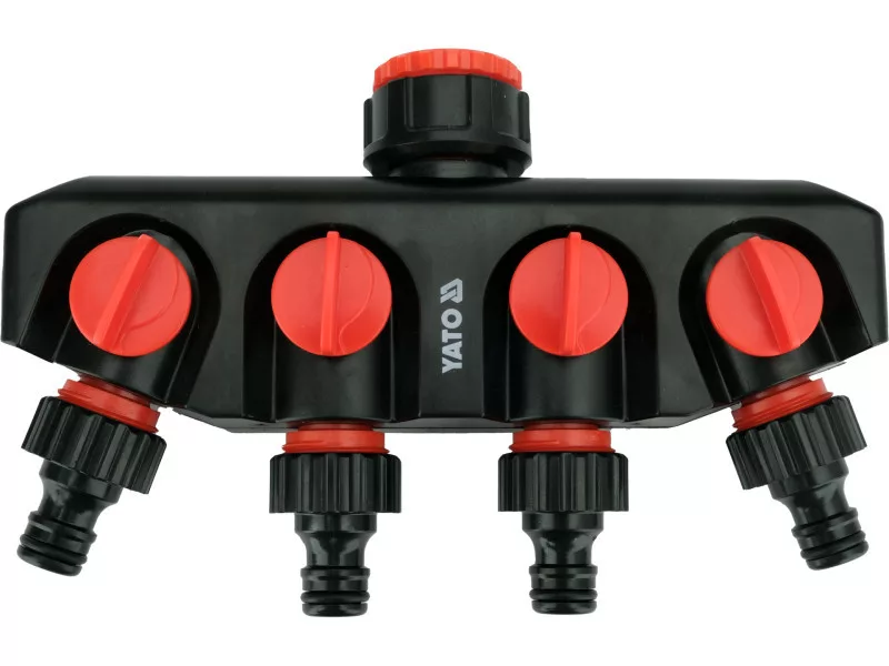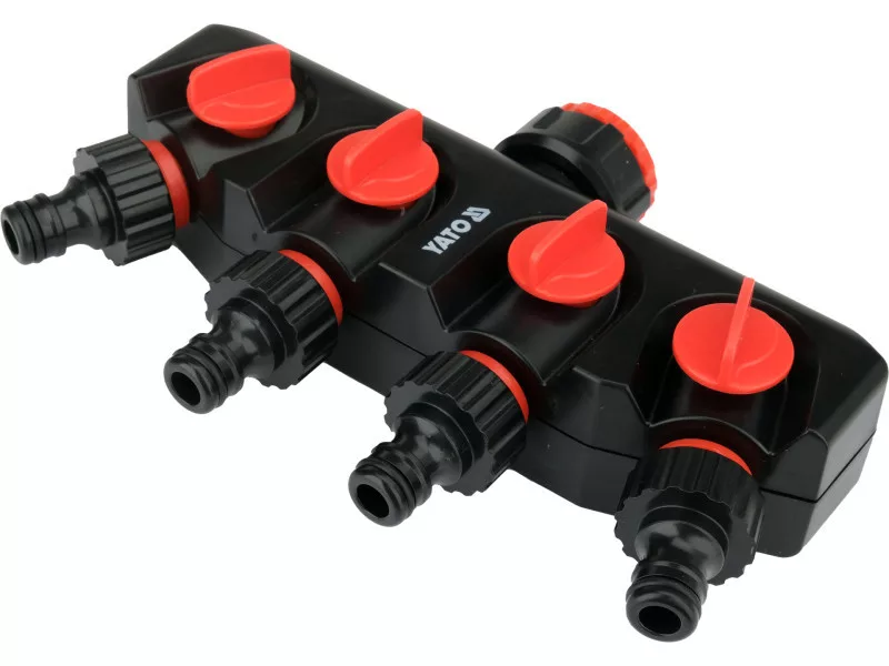 The Yato YT-89103 splitter allows simultaneous connection of up to four independent water lines to a single faucet with a 3/4" or 1" thread. Each outlet is equipped with a separate valve, allowing for precise control of water flow. Made of durable ABS and POM materials, the connector ensures strength and reliable operation even in challenging outdoor conditions.